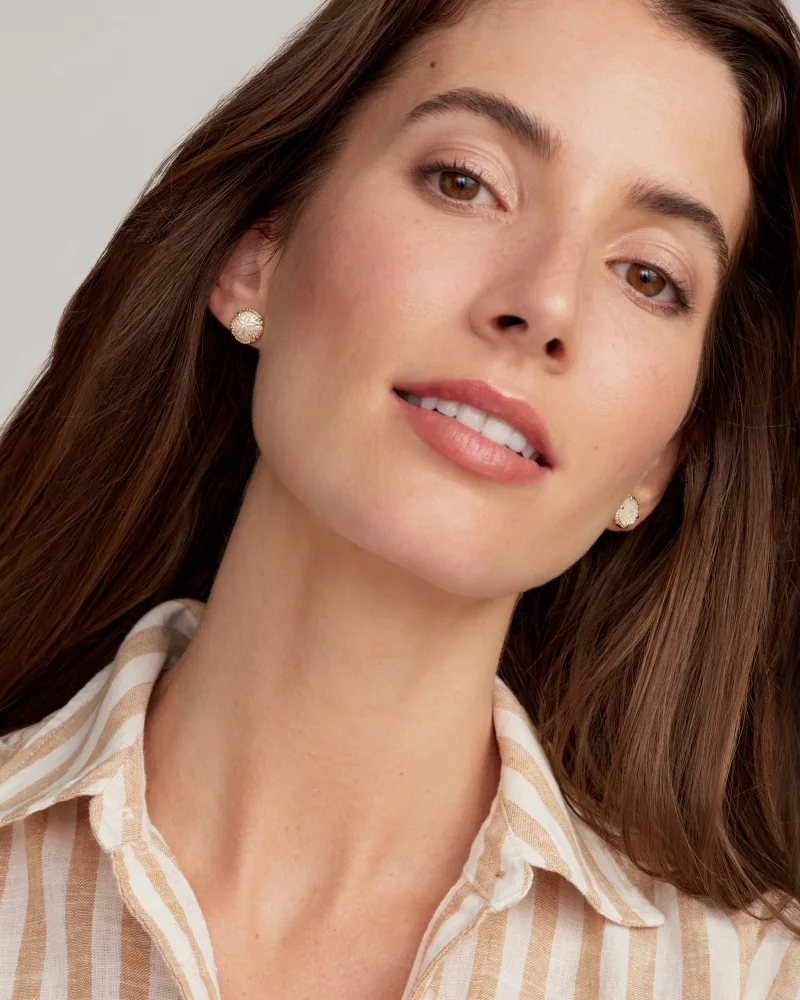 You’re shore to add a bit of fun to any ear stack with the Sand Dollar Gold Stud Earrings. Inspired by the one-of-a-kind sea creature, this earring’s carved mother-of-pearl detail is a delicate rendition of a beloved ocean treasure.